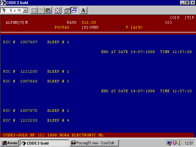 Il sistema POCSAG (Post Office Standard Advisory Group) viene utilizzato da diversi servizi postali e telefonici per il servizio di cercapersone, in Italia č conosciuto come Teledrin. Questo modulo č perfettamente conforme alle disposizioni CCIR racc. 584 annex rec. 900. Il sistema di correzione d'errore BCH permette di correggere pių di due errori in ogni blocco di dati, e quando si verificano pių di due errori per ogni blocco di dati, il sistema salta la fase di correzione e si prepara a ricevere una nuova sequenza valida. Molte stazioni utilizzano l'invio due falsi errori per portare il sistema pager che riceve in posizione di riposo 'sleep'. POCSAG / SUPER POCSAG Pocsag is described in CCIR rec. 584-1 annex rec. 900. This module fully complies with these recommendations. The BCH error correction system is designed to correct up to 2 errors in each data block. If more than 2 consecutive error-blocks are detected then the system will immediately drop further decoding of the data block and wait for a new valid call. Many stations force two false errors at the end of their transmissions to instruct battery powered pagers to switch back to 'sleep' mode. Although the original specification was for a 512bps system, there has been further speeds added over the years to increase the number of pages/minute. Besides 512bps there is also 1200 and 2400bps observed. 1200bps and 2400bps is called Super Pocsag. The majority of pager transmissions today are at 1200bps. 512bps is slowly being phased out in favour of the faster speeds. When receiving 1200 and 2400bps pager transmissions it is usually possible to decode most pages without modification to your scanner or receiver. You may be able to use the normal headphone or "rec out" socket. However, if you wish to decode all POCSAG transmissions you will need to take a tap off your receivers FM Discriminator. This is becuase the signal is a DC keyed transmission. It may make audio burbling type sounds, but the modulation is NOT applied to a normal FM or AM transmitter as with other VHF transmissions. POCSAG transmitters actually use a +/- 4kHz deviation. I.e if a transmitter was on a nominal frequency of 153.125 MHz then the two states would be 153.121 MHz and 153.129 MHz. It is quite feasible for a transmitter to need to send the sequence 1111111 or 000000 and this would result in a signal that appeared to be temporarily "resting" on one frequency. If you monitor the D.C. voltage on the output of a discriminator using a high impedance device such as an oscilloscope you would see square shaped waves coming out whenever the signal keyed its binary data stream. If you now monitor the same signal via the headphone or "rec-out" socket you would see something which was a lot different! All the steady +/- 4kHz states would decay very quickly over a very short time such that what should be 1111111 becomes 111 "dunno" "dunno" "dunno" "dunno". This very much reminds me of that old expression "GIGO" (Garbage in Garbage Out). ![]() |
