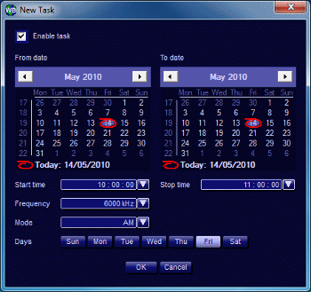 You can easily set the scheduler to record a radio station's daily transmissions (up to 24 hours of recordings) on certain days of the week, or for an entire season, as long as your computer has enough free hard disk space.